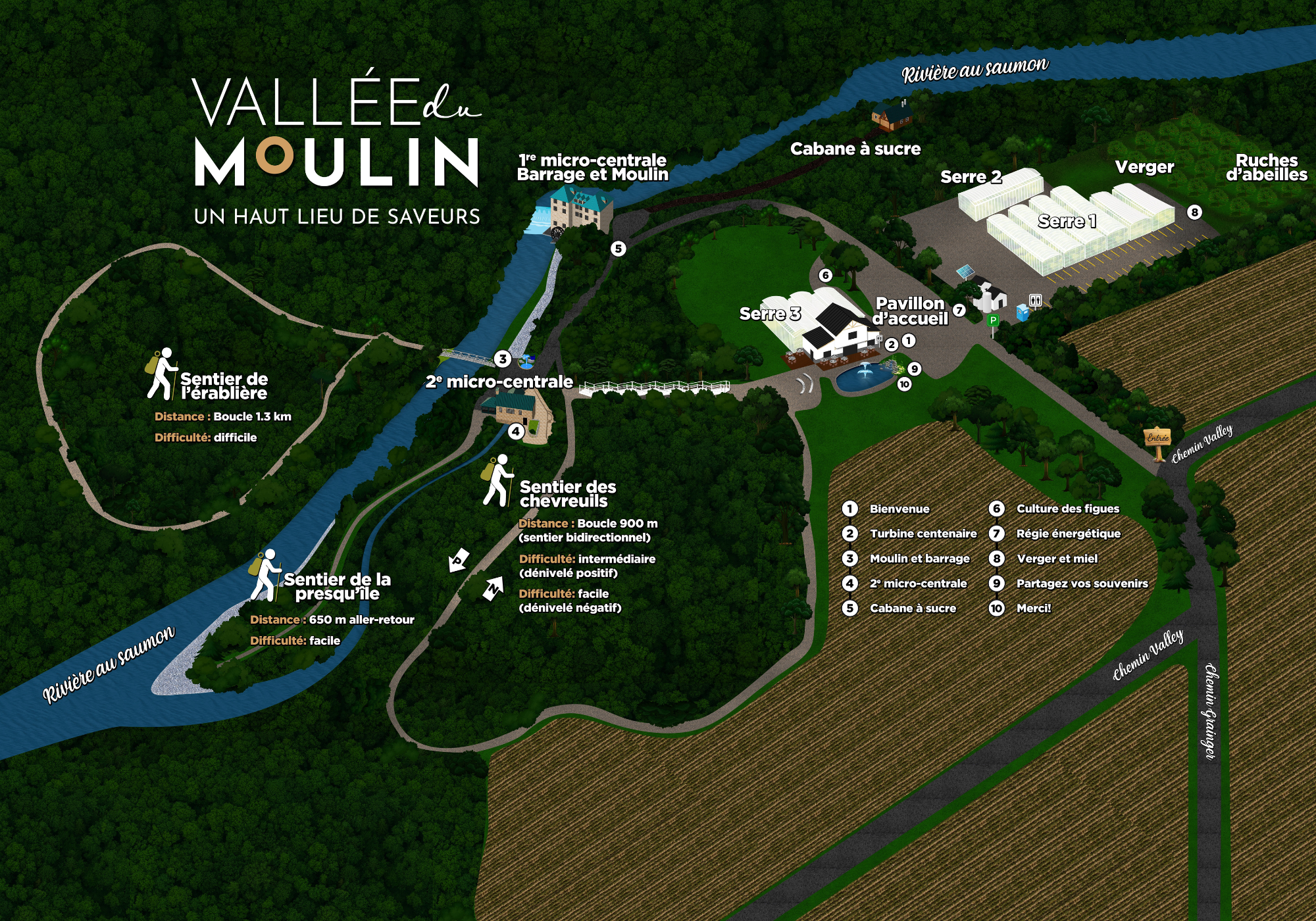 Pour la saison 2025, notre parcours de visite autonome a été bonifié pour vous offrir une immersion encore plus riche dans notre vallée, où la culture de la figue rencontre l'ingéniosité de notre production hydroélectrique.